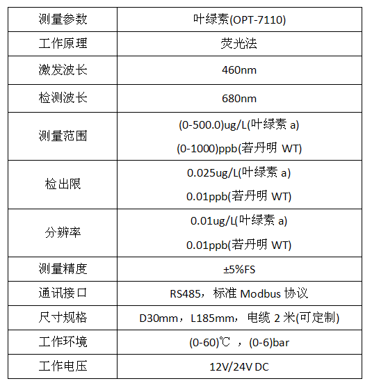 水體中葉綠素的濃度反映了浮游植物的含量,監測水中葉綠素的含量可判定水體富營養化程度,預警水質污染和水貨、赤潮的發生。